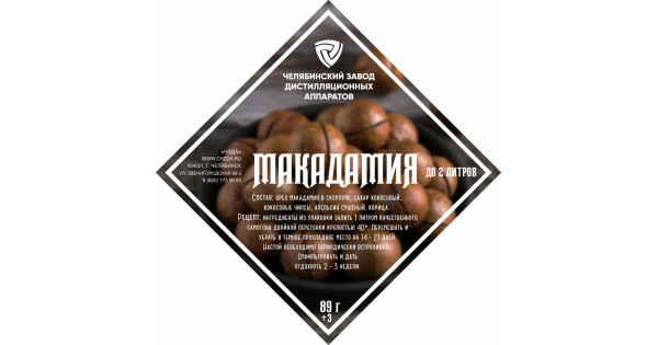 Ingredients: inshell macadamia nut. coconut sugar. coconut chips, dried orange, cinnamon. Recipe: Pour the ingredients from the package with 1 liter of high-quality double-distilled moonshine with a strength of 40%. Stir and remove in a cool dar..