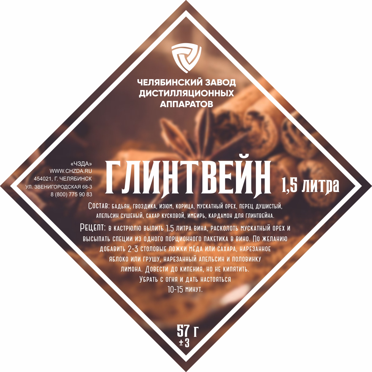 A set of spices "Mulled wine". The set of spices "Mulled wine" includes: badon, carnation, raisins, cinnamon, nutmeg, sweet pepper. Recipe Pour a bottle of red wine into the pot, chop the nutmeg and pour the spices from o..